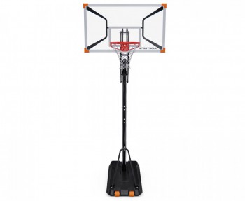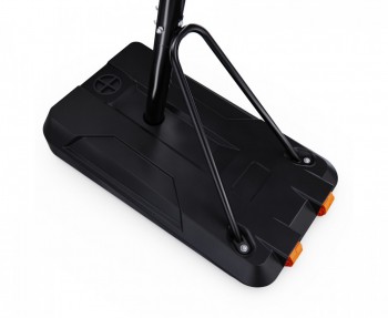 Портативная конструкция с транспортировочными роликами позволяет создать собственную баскетбольную площадку так, как надо именно вам. Основание стойки имеет увеличенный объем. В основание стойки необходимо залить воду (ёмкость бака 128 л.) или засыпать песок (182 кг) в качестве утяжелителя.
