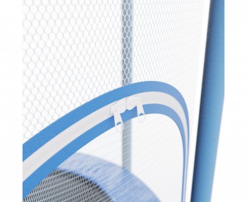 Рама и ножки выполнены из надёжной стальной трубы Ø25 мм с толщиной стенки 1,4 мм. Батут оснащён 6 ножками, которые равномерно распределяют нагрузку и обеспечивают устойчивость при прыжках. Мягкий защитный мат из ПВХ закрывает пружины и раму, предотвращая случайные удары и повышая комфорт во время занятий.