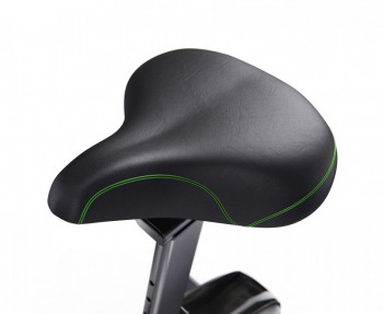 Инерционный вес маховика велотренажера составляет 11 кг, что обеспечивает плавный и бесшумный ход педалей. Между стойкой руля и кожухом маховика относительно большое пространство, чтобы безопасно сесть и слезть. Прочная рама обеспечивает достаточную поддержку при посадке и спуске.